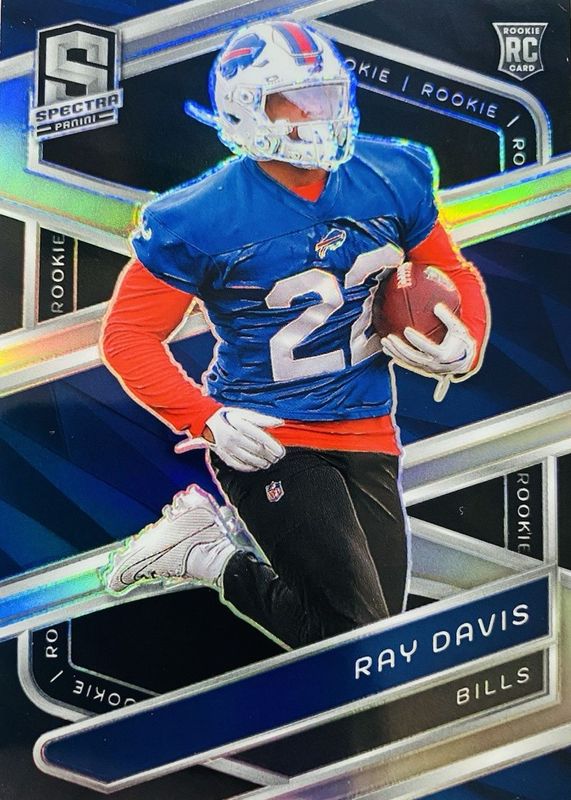 This card is 1 of 19 Ray Davis' card variations in the 2024 Spectra set being tracked by Sports Card Investor, including Base, Celestial /99, Hyper /75, Interstellar /60, and Neon Blue Die-Cut /50.