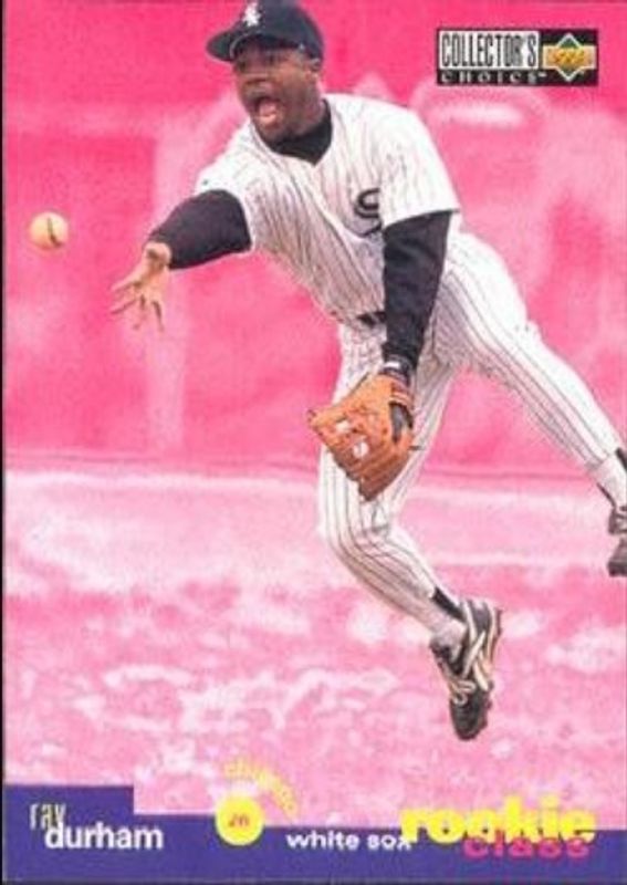 The Ray Durham 1995 Upper Deck Collector's Choice #3 Base Rookie card is 1 of 3 Ray Durham's card variations in the 1995 Upper Deck Collector's Choice set being tracked by Sports Card Investor, including Gold Signatures, and Silver Signatures.