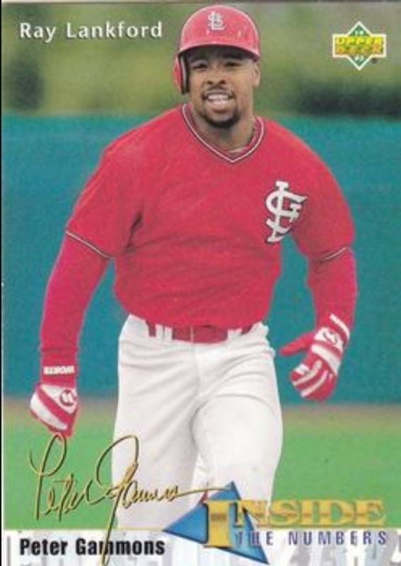 The Ray Lankford 1993 Upper Deck #461 Gold Hologram card is 1 of 5 Ray Lankford's card variations in the 1993 Upper Deck set being tracked by Sports Card Investor, including #244 Base, #461 Base, #244 Gold Hologram, and #HR20 Home Run Heroes.