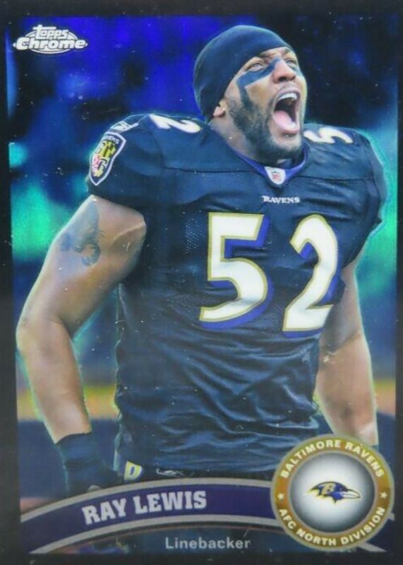 The Ray Lewis 2011 Topps Chrome #2 Black Refractor /299 card in Raw condition has moved up $3.00 (+9.4%) in the last 30 days and was last sold for $35.00 .