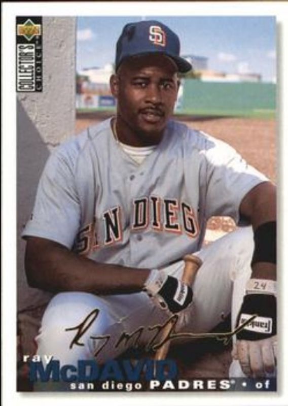 The Ray McDavid 1995 Upper Deck Collector's Choice #353 Gold Signatures Rookie card is 1 of 3 Ray McDavid's card variations in the 1995 Upper Deck Collector's Choice set being tracked by Sports Card Investor, including Base, and Silver Signatures.
