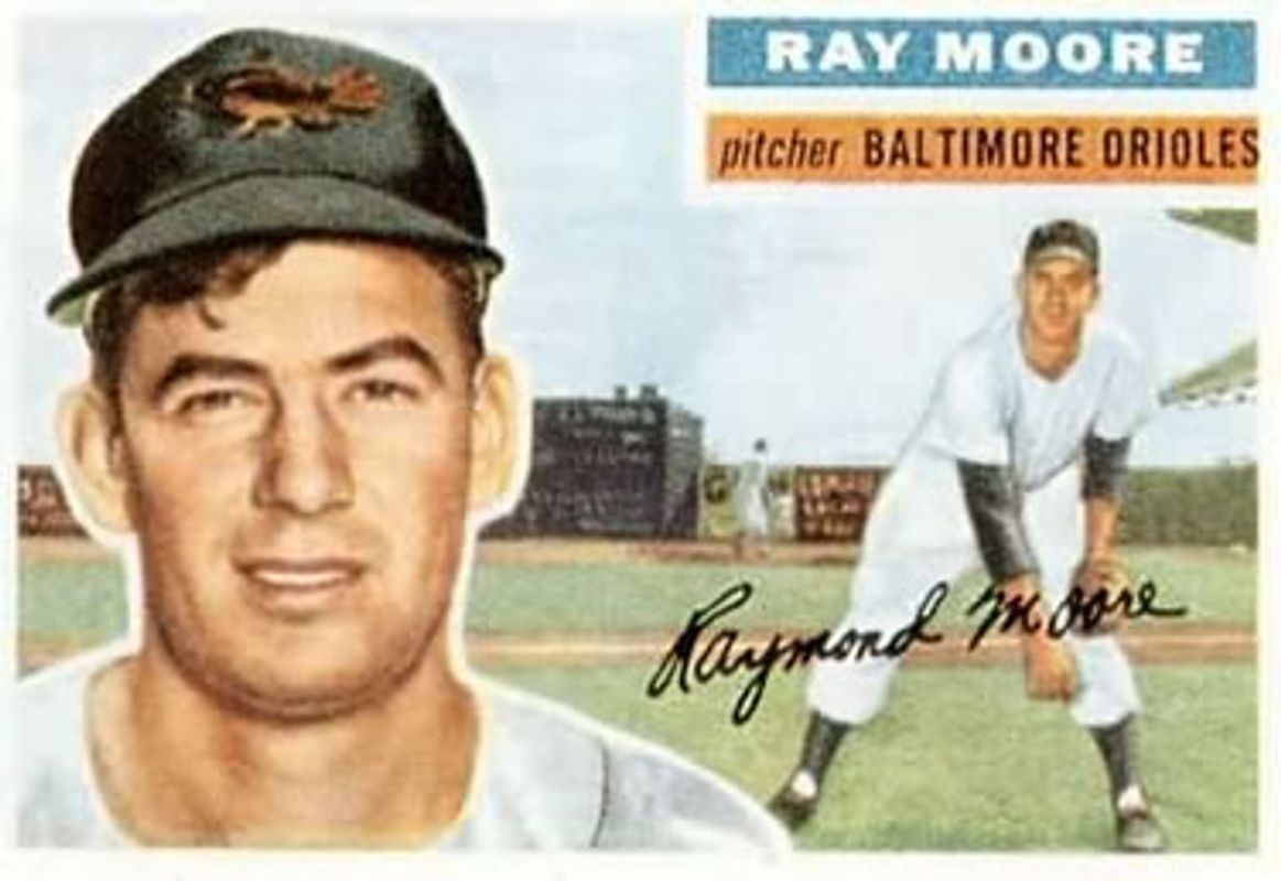 The Ray Moore 1956 Topps #43b Base card is 1 of 2 Ray Moore's card variations in the 1956 Topps set being tracked by Sports Card Investor, including Base.