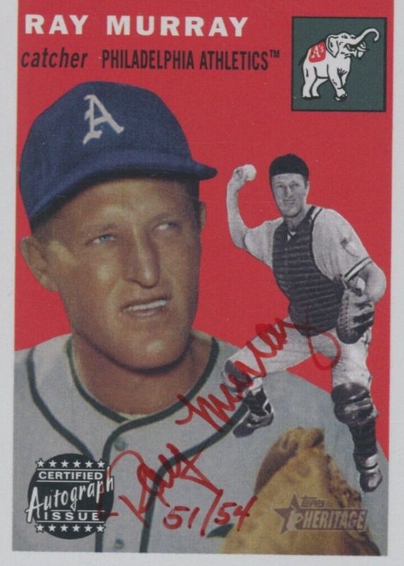 The Ray Murray 2003 Topps Heritage #RO-RM Real One Autographs - Red Ink /54 card in Raw condition has not changed in price in the last 30 days and was last sold for $9.50 .