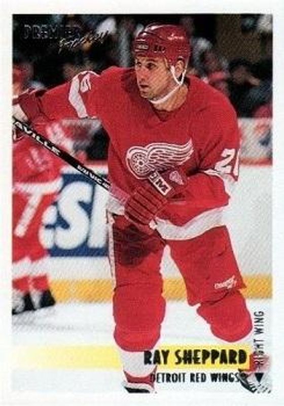 The Ray Sheppard 1994 Topps Premier #429 Base card is 1 of 3 Ray Sheppard's card variations in the 1994 Topps Premier set being tracked by Sports Card Investor, including Special Effects, and Finest Top Goal Scorers.