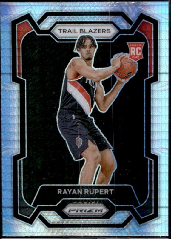The Rayan Rupert 2023 Prizm #140 Hyper Rookie card is 1 of 95 Rayan Rupert's card variations in the 2023 Prizm set being tracked by Sports Card Investor, including Base, Blue Wave, Choice Blue Yellow Green, Fast Break, and Green.