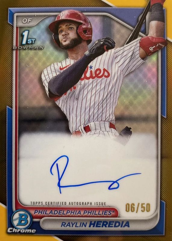 Best Prices Available For Sale of Raylin Heredia 2024 Bowman #CPA-RH Chrome Prospect Auto - Gold Refractor /50 (1st)