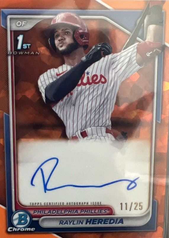 2024 Bowman Sapphire Raylin Heredia Chrome Auto Orange 1st #21/25