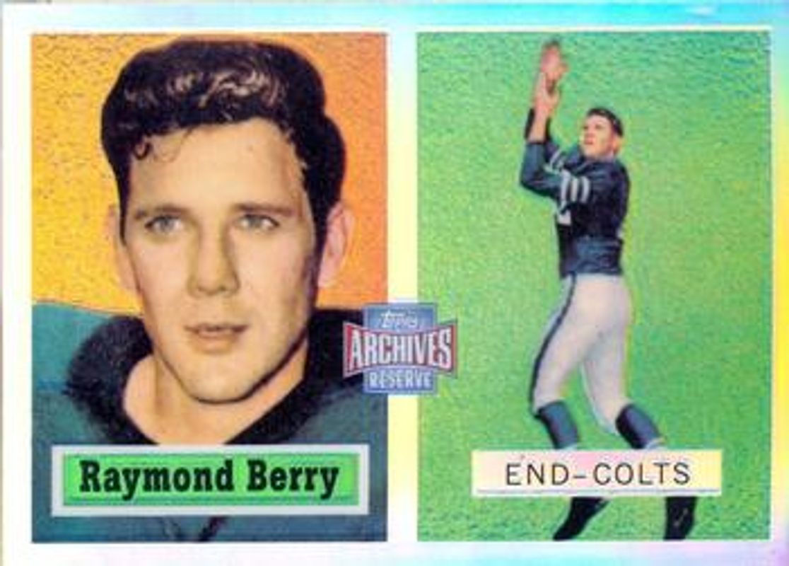 The Raymond Berry 2001 Topps Archives Reserve #65 Base card is 1 of 2 Raymond Berry's card variations in the 2001 Topps Archives Reserve set being tracked by Sports Card Investor, including Rookie Reprint Autographs.