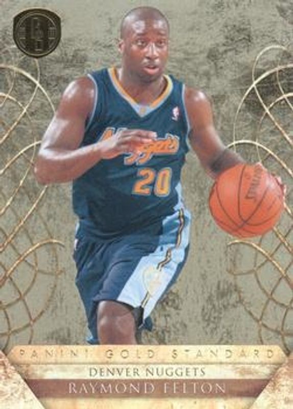 The Raymond Felton 2010 Gold Standard #48 Base /299 card is 1 of 14 Raymond Felton's card variations in the 2010 Gold Standard set being tracked by Sports Card Investor, including Platinum Gold /25, Black Gold /1, Gold Crowns /299, Gold Nuggets /299, and Gold Stars /299.