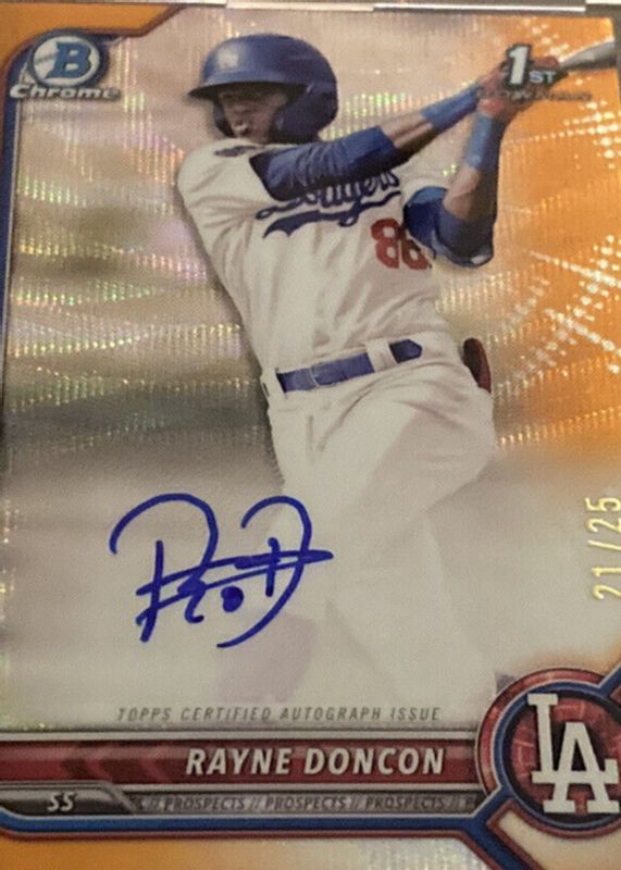 Rayne Doncon 2022 Bowman Chrome #CPA-RD Prospect Auto - Orange Shimmer Refractor /25 (1st) RAW Price Guide