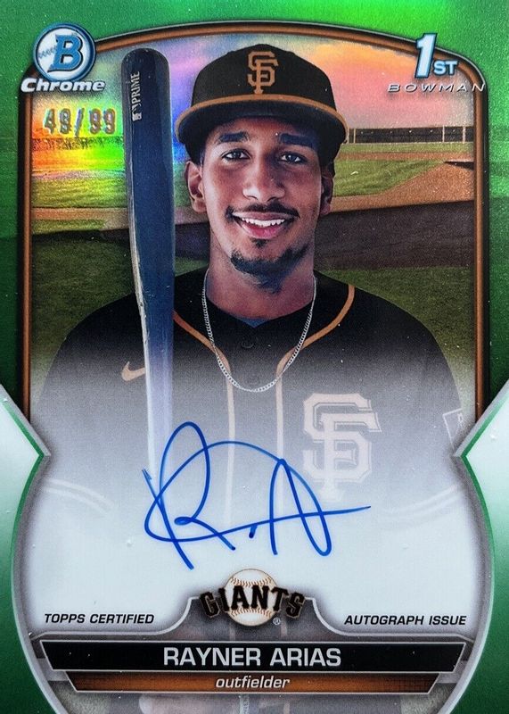 2023 Bowman Chrome Rayner Arias 1st Prospect Green Refractor Auto /99 SF Giants