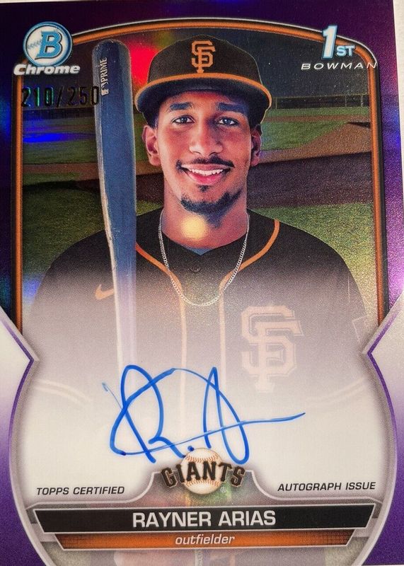 2023 Bowman Chrome Rayner Arias Purple 1st Prospect Auto /250 #CPA-RA Giants