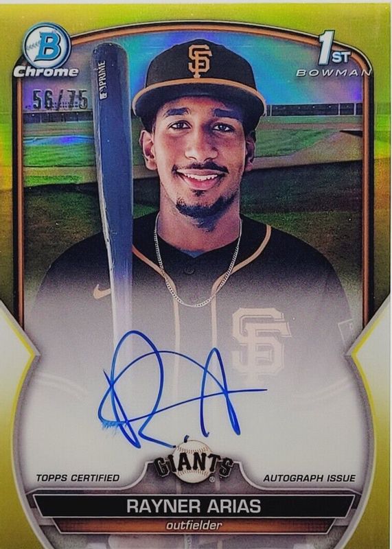 RAYNER ARIAS 2023 BOWMAN CHROME 1ST YELLOW GIANTS AUTO /75 Q0165