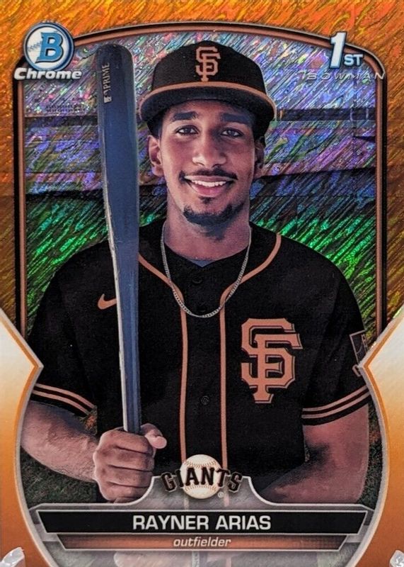 RAYNER ARIAS 1st 🔥 2023 Bowman Chrome ORANGE SHIMMER #/25 BCP-222 Giants