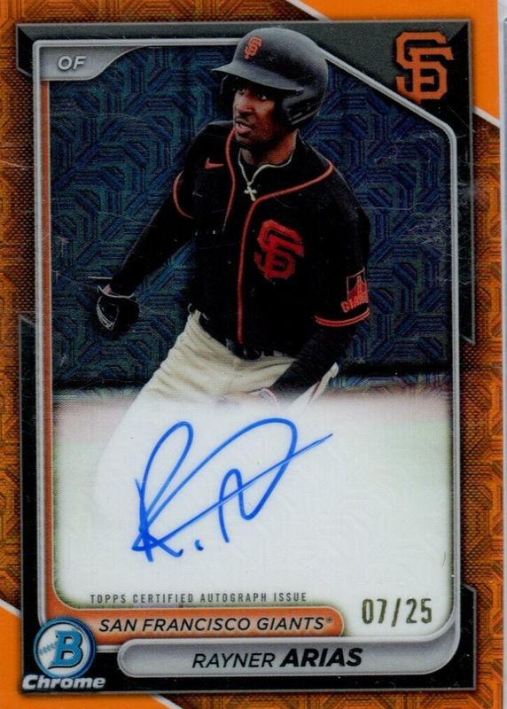 Rayner Arias 2024 Bowman Mega Box #BMA-RA Chrome Prospect Auto - Orange Refractor /25 RAW Price Guide