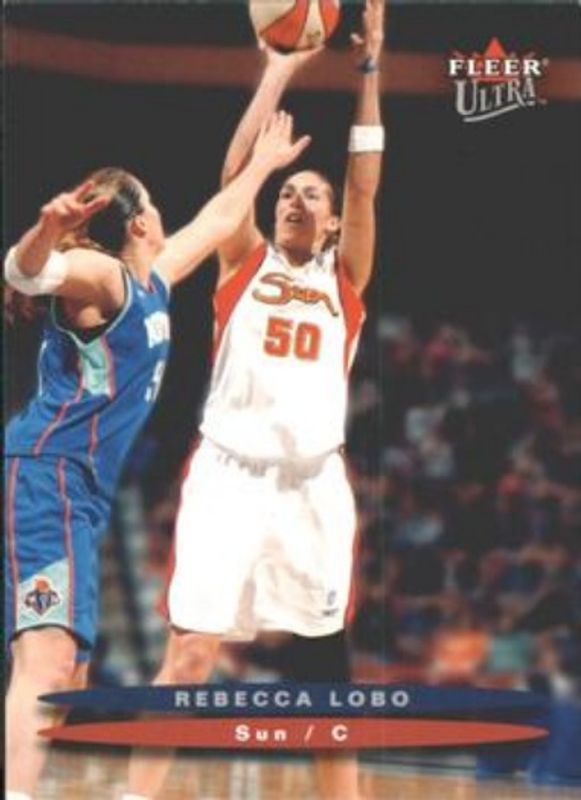 The Rebecca Lobo 2003 Fleer Ultra WNBA #4 Base card is 1 of 2 Rebecca Lobo's card variations in the 2003 Fleer Ultra WNBA set being tracked by Sports Card Investor, including Gold Medallion /25.
