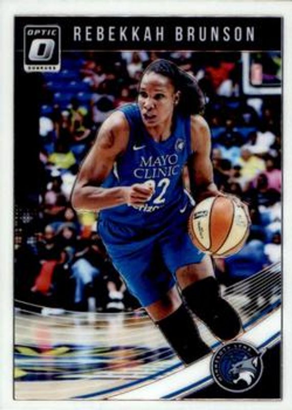 The Rebekkah Brunson 2019 Donruss WNBA #75 Optic card is 1 of 19 Rebekkah Brunson's card variations in the 2019 Donruss WNBA set being tracked by Sports Card Investor, including Base, Optic Holo, Silver Press Proof /199, Purple Press Proof /99, and Gold Laser Press Proof /10.