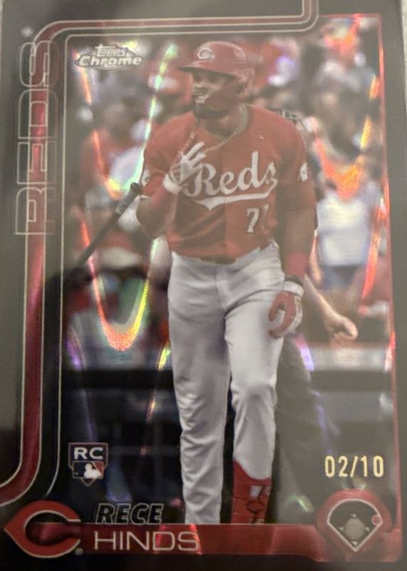 The Rece Hinds 2025 Topps Chrome #253 Black RayWave Refractor /10 Rookie card in Raw condition has moved up $5.52 (+22.5%) in the last 30 days and was last sold for $30.00 .
