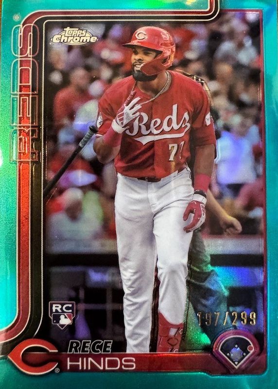 The Rece Hinds 2025 Topps Chrome #253 Teal Refractor /299 Rookie card in Raw condition has moved up $0.25 (+7.7%) in the last 30 days and was last sold for $3.50 .