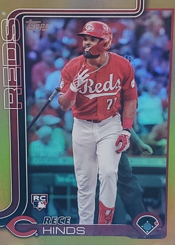 The Rece Hinds 2025 Topps #217 Gold Rainbow /50 Rookie card in Raw condition has not changed in price in the last 30 days and was last sold for $9.99 .