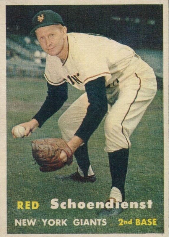 The Red Schoendienst 1957 Topps #154 Base card in PSA 6 condition has moved up $10.01 (+22.2%) in the last 30 days and was last sold for $55.00 .