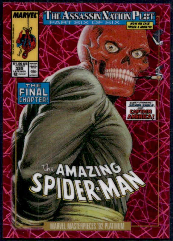 The Red Skull 2024 Upper Deck Marvel Masterpieces '92 Platinum #80-V Variant Cover - Pink Laser /692 card is 1 of 38 Red Skull's card variations in the 2024 Upper Deck Marvel Masterpieces '92 Platinum set being tracked by Sports Card Investor, including Base, Blue Traxx, Canvas, Clear Cut, and Emerald Surge.