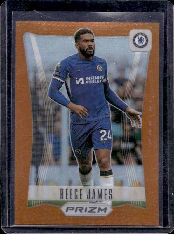 The Reece James 2023 Prizm Premier League #27 Flashback 2012 - Orange /25 card is 1 of 86 Reece James' card variations in the 2023 Prizm Premier League set being tracked by Sports Card Investor, including Base, Blue Mosaic, Breakaway, Breakaway Orange, and Choice.
