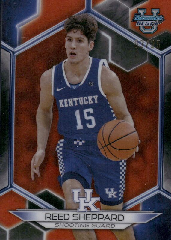 Reed Sheppard 2023-24 Bowman University Best Orange Refractor #42 #/25 Wildcats