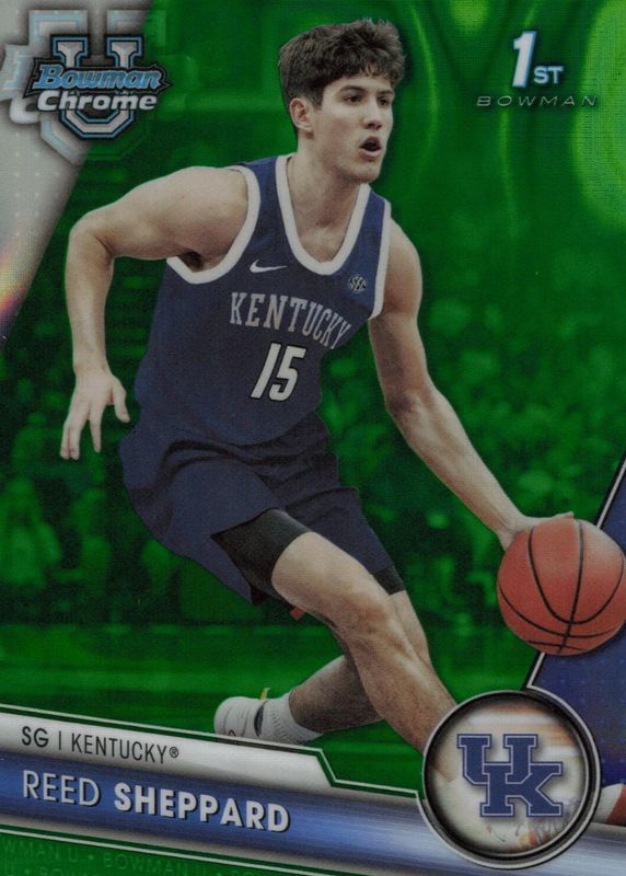 Reed Sheppard 2023 Bowman Chrome University #45 Green Lava Refractor /99 (1st) RAW Price Guide