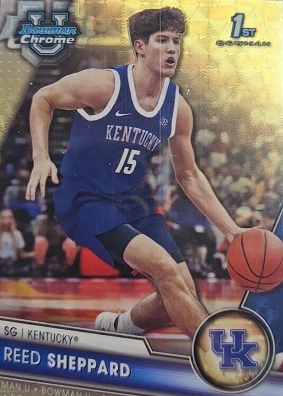 This card is 1 of 45 Reed Sheppard's card variations in the 2023 Bowman Chrome University set being tracked by Sports Card Investor, including Base (1st), Pink Refractor (1st), Purple Shimmer Refractor (1st), Refractor (1st), and X-Fractor (1st).