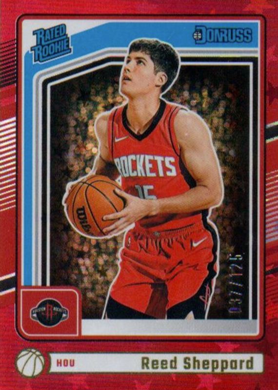 2024-25 Panini Donruss - Reed Sheppard Red Stars /125 Rated Rookie #202 Rockets
