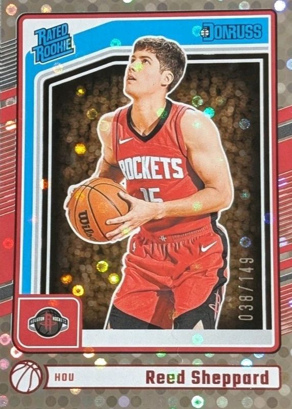 2024-25 DONRUSS - RATED ROOKIE REED SHEPPARD RED DISCO /149 #202 ROCKETS