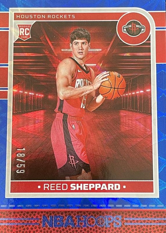 This card is 1 of 119 Reed Sheppard's card variations in the 2024 Hoops set being tracked by Sports Card Investor, including Base, Tribute, Blue, Impulse, and Premium.