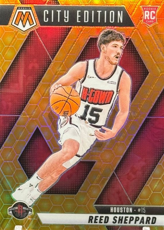 The Reed Sheppard 2024 Mosaic #276 City Edition - Honeycomb /(SSP) Rookie card in Raw condition has moved up $13.00 (+48.1%) in the last 30 days and was last sold for $40.00 .