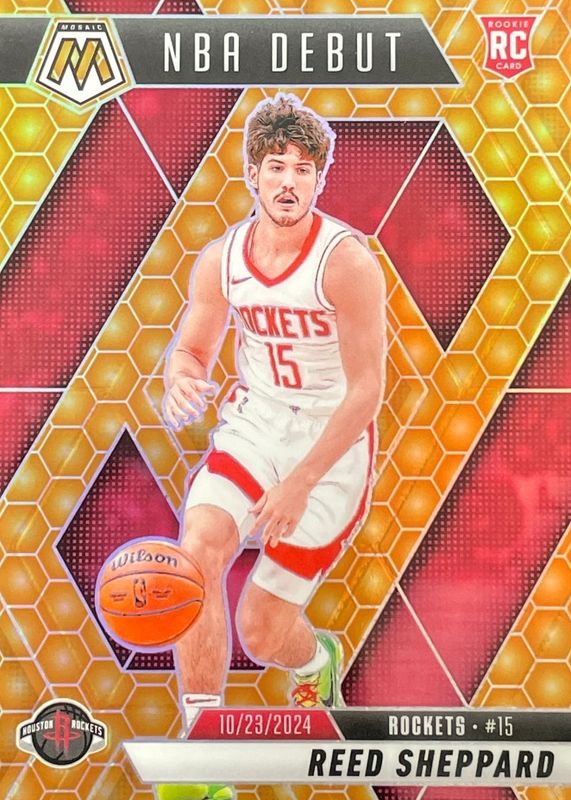 2024-25 Panini Mosaic NBA Debut Reed Sheppard Honeycomb RC SSP Rockets