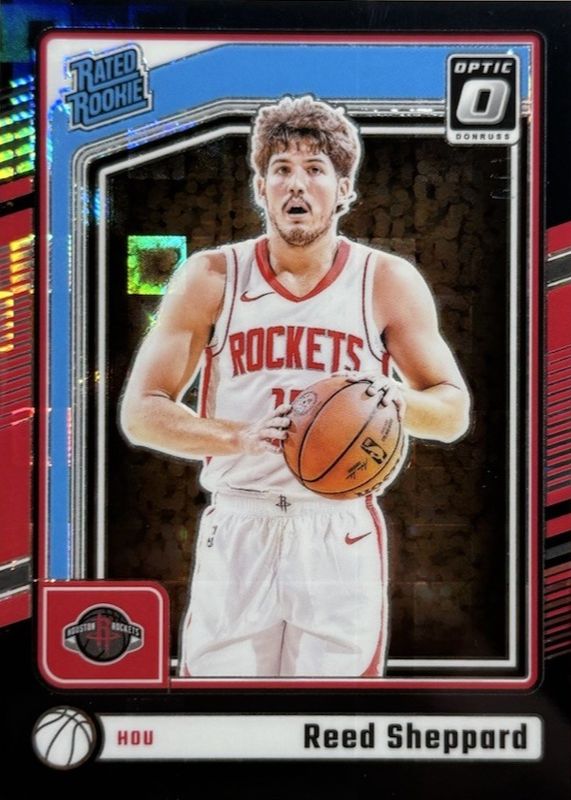 This card is 1 of 265 Reed Sheppard's card variations in the 2024 Optic set being tracked by Sports Card Investor, including Base, Blue Velocity, Checkerboard, Choice, and Fast Break.