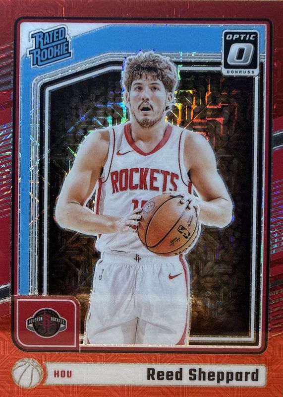 Reed Sheppard (RC) 2024-25 Optic - Rated Rookie Choice Red /88 - Rockets #255
