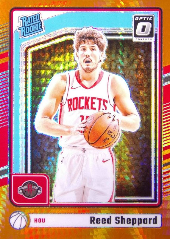 The Reed Sheppard 2024 Optic #255 Hyper Orange /299 Rookie card in Raw condition has not changed in price in the last 30 days and was last sold for $4.00 .