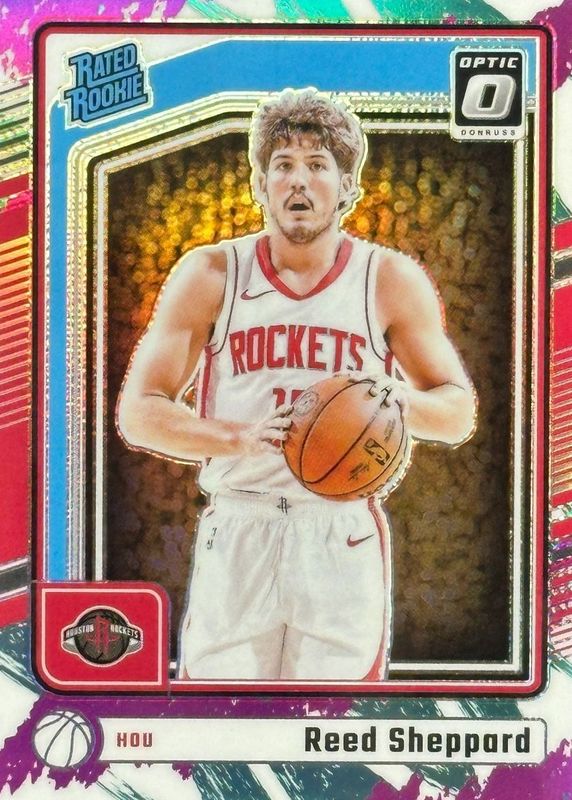 This card is 1 of 265 Reed Sheppard's card variations in the 2024 Optic set being tracked by Sports Card Investor, including Base, Blue Velocity, Checkerboard, Choice, and Fast Break.