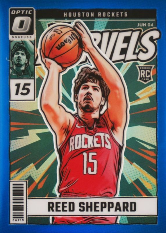 REED SHEPPARD 2024-25 PANINI DONRUSS OPTIC #4 ROOKIE NET MARVELS BLUE PRIZM 8/49