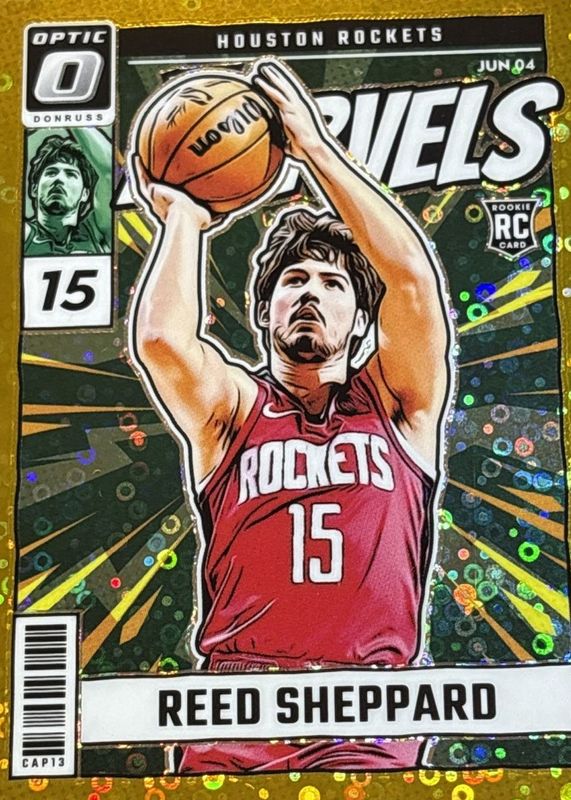 Reed Sheppard 2024 Optic #4 Net Marvels - Fast Break Gold /10 Rookie RAW Price Guide