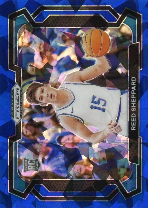 The Reed Sheppard 2024 Prizm Draft Picks #21 Variation - Blue Ice /99 Rookie card in Raw condition has not changed in price in the last 30 days and was last sold for $5.00 .