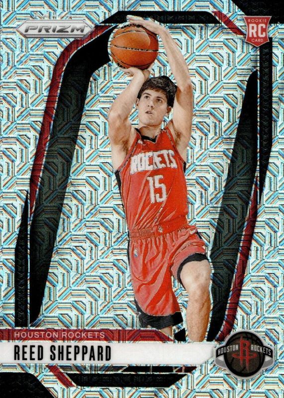 This card is 1 of 207 Reed Sheppard's card variations in the 2024 Prizm set being tracked by Sports Card Investor, including Base, China Variation, Choice Blue Yellow Green, Fast Break, and Green.