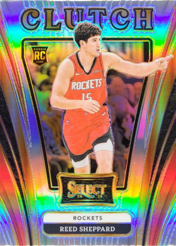 The Reed Sheppard 2024 Select #25 Clutch Silver Rookie card is 1 of 401 Reed Sheppard's card variations in the 2024 Select set being tracked by Sports Card Investor, including Concourse, Courtside, Mezzanine, Premier Level, and Concourse Blue Cracked Ice.