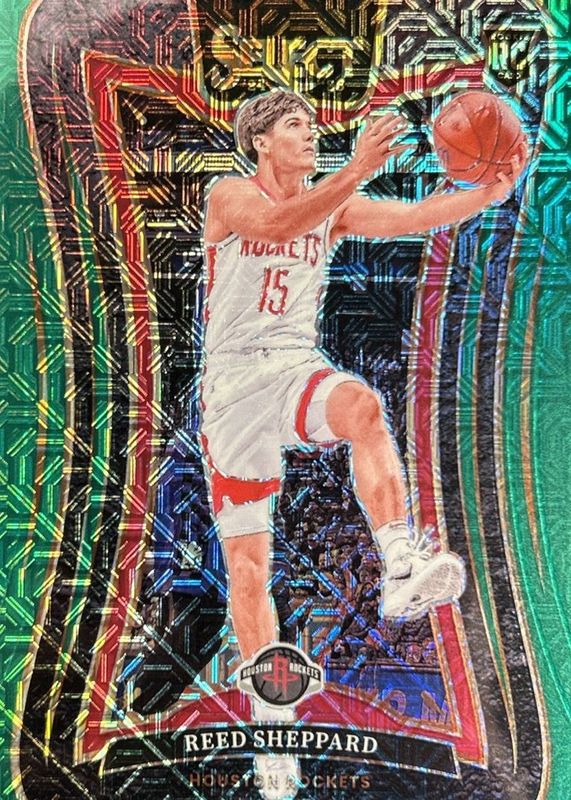Auctions Ending Soon for Reed Sheppard 2024 Select #366 Mezzanine Green Mojo Rookie RAW