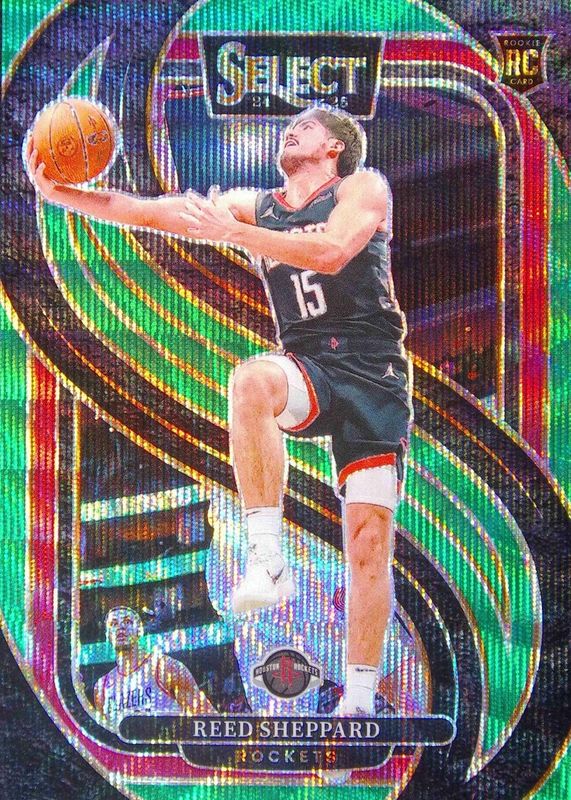 2024-25 Select Reed Sheppard Premier Green Wave Prizm RC #7/50 Rockets
