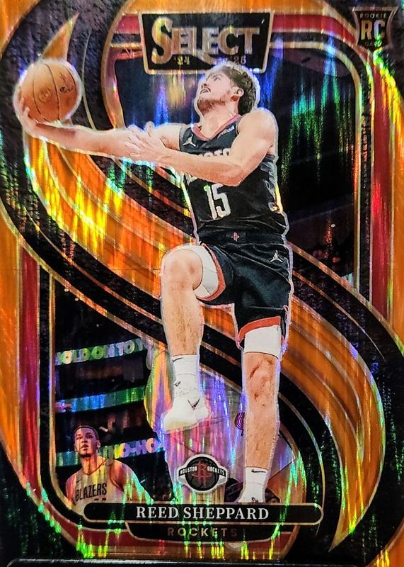 The Reed Sheppard 2024 Select #181 Premier Level Orange Flash Rookie card in Raw condition has moved up $8.74 (+388%) in the last 30 days and was last sold for $10.99 .