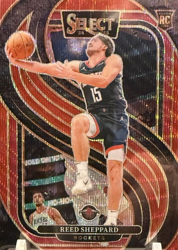 Reed Sheppard 2024-25 Panini Select #181 Red Wave Prizm Houston Rockets