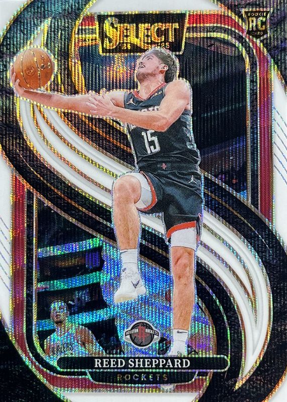 The Reed Sheppard 2024 Select #181 Premier Level White Wave /99 Rookie card in Raw condition has moved down -$8.49 (-44.7%) in the last 30 days and was last sold for $10.50 .