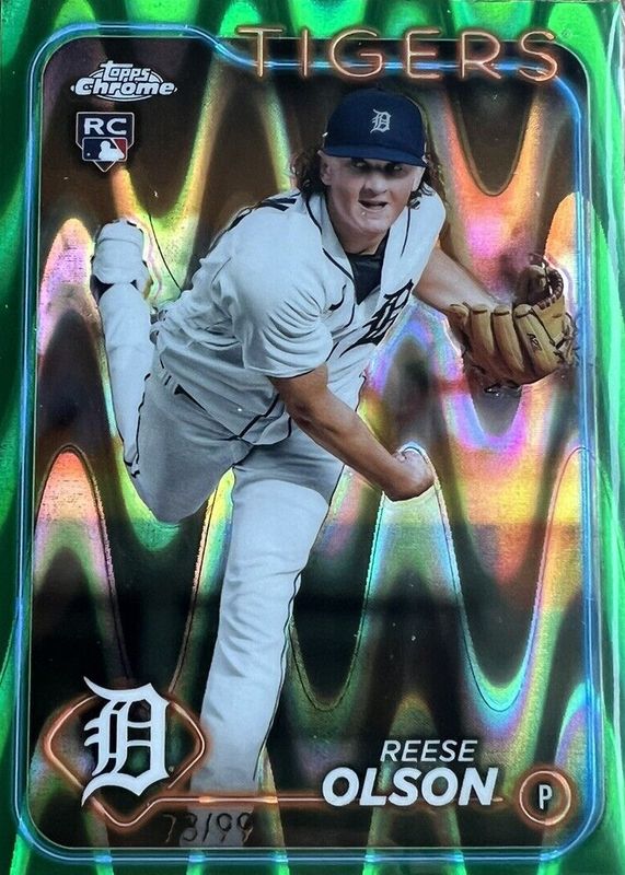 REESE OLSON 2024 Topps Chrome GREEN RayWAVE REFRACTOR RC /99 Tigers #40